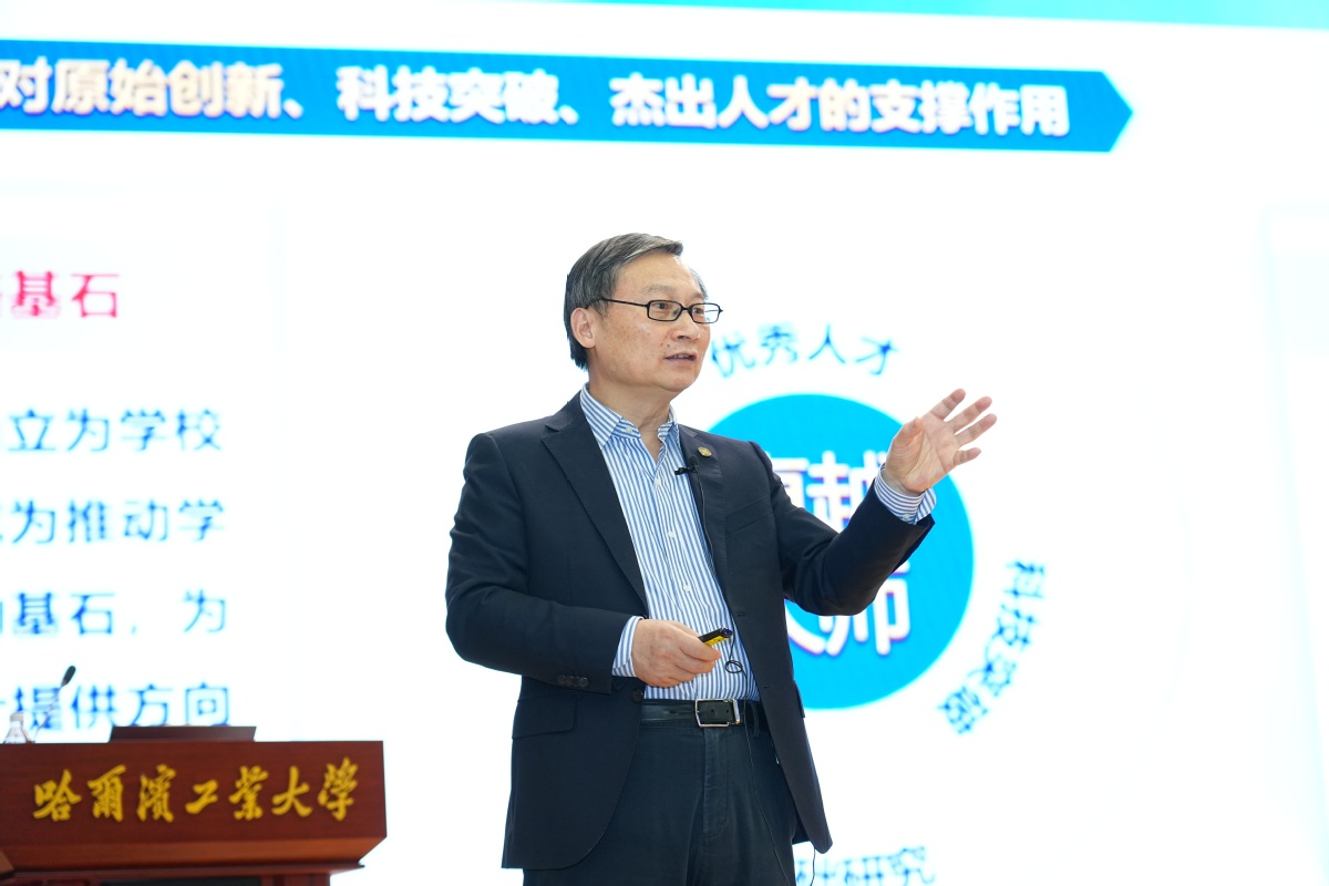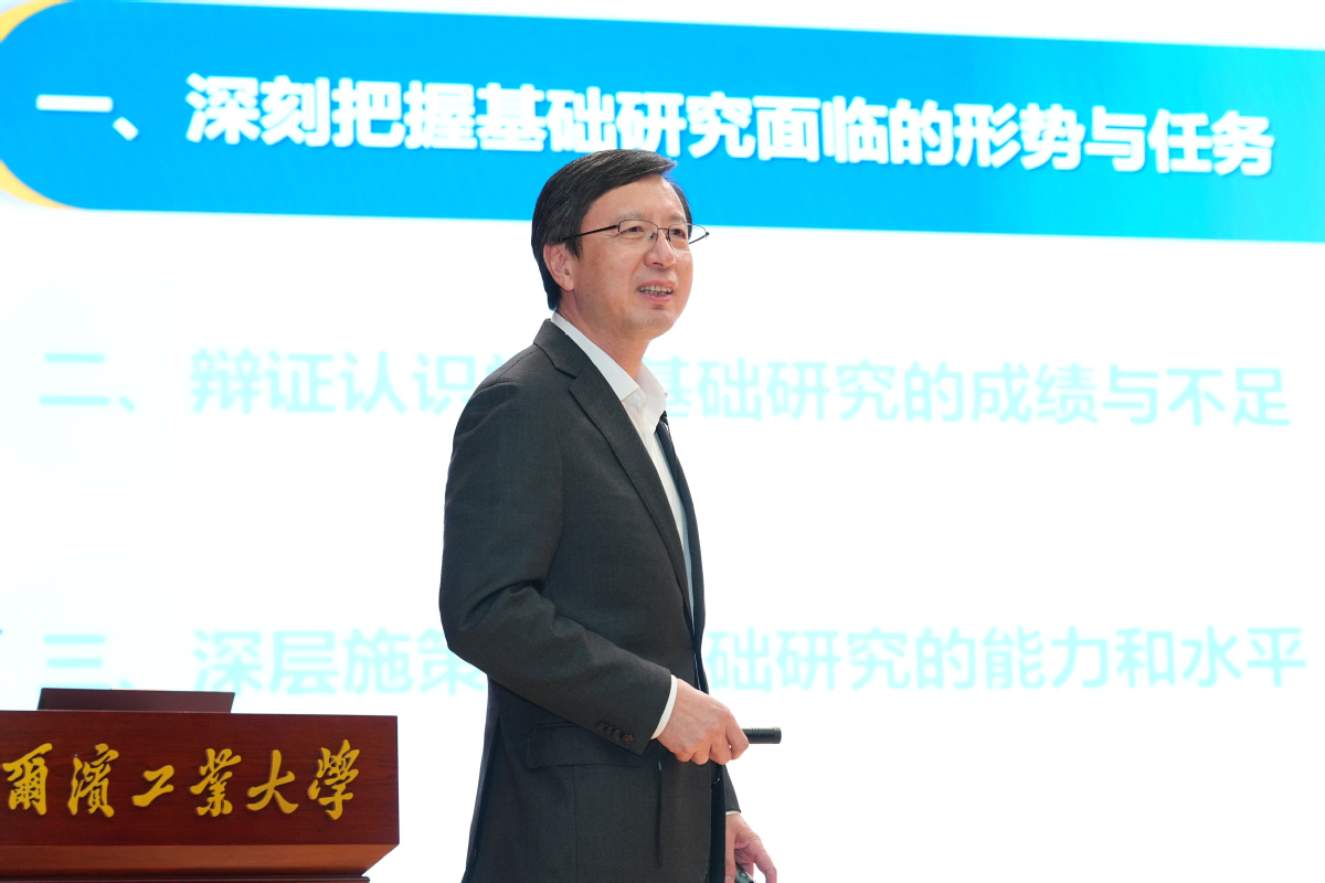 “开展基础研究,本质上就是通过提出和解决科学问题,实现知识体系的扩展,引领和支撑技术的发展。破解基础研究困境,要从科学端、工程端、交叉端、产业端‘四个切入点’破局……”陈杰围绕“深层施策提升基础研究的能力水平”,对学校基础研究工作如何深化、如何破局作出部署要求。他强调,要从“科学端”入手,激发科学奇思妙想,构建精准、动态的学术追踪体系,勇闯科学发现“无人区”;要从“工程端”入手,运用技术科学思维,挖好国家重大工程攻关经验富矿,探索凝练形成从重大工程中凝练科学问题的“哈工大范式”;要从“交叉端”入手,拓展升级交叉范畴,构建行之有效的学科交叉促进机制,推动跨学校、跨学科、跨领域、跨国界的协同创新,构筑跨学科人才培养和科学研究新生态;要从“产业端”入手,立足新兴未来产业,以深层链接跻身世界科技竞争赛道,推动战略创新链贯通布局,以产业创新反哺基础研究。