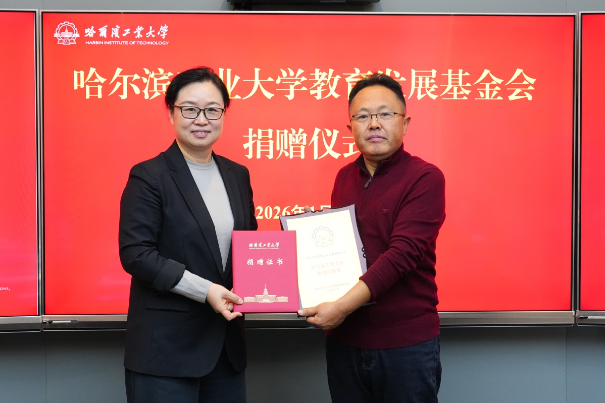 哈工大全媒体(阚思邈/文 辛然/图)1月5日,哈工大教育发展基金会捐赠仪式举行。沈阳和泰冶金设备有限公司向基金会捐赠,用于设立和泰奖学金。常务副校长、基金会副理事长孙雪为沈阳和泰冶金设备有限公司颁发教育贡献奖奖牌和捐赠证书。